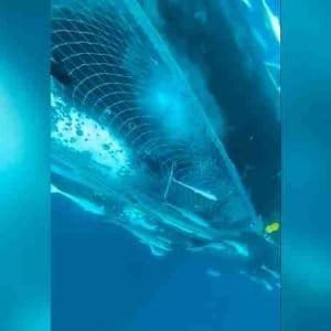 Grupo de buzos libera a una ballena enredada en redes de pesca