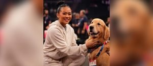 Beacon, el primer perro de terapia que ayuda a los gimnastas estadounidenses