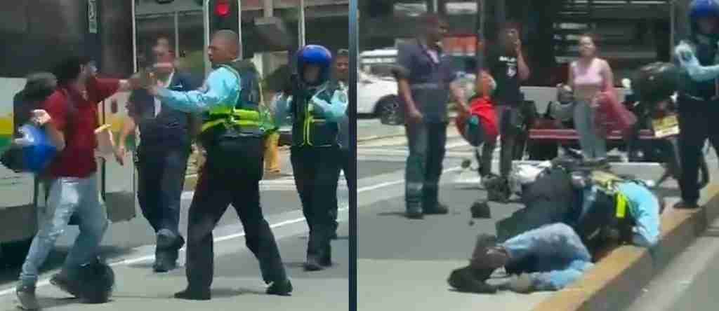 Los hechos se presentaron en la vía el Ferrocarril, de la capital antioqueña, donde al parecer un motociclista que fue sorprendido andando por la vía exclusiva del Metroplús, se enfureció porque lo sancionaron y le iban a inmovilizar la moto, lo que generó la reacción violenta del conductor y se enfrentó a golpes con el guarda de tránsito.