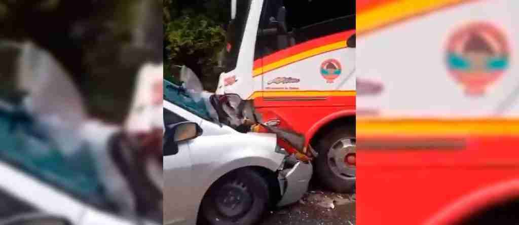 En horas de la mañana de este miércoles 17 de abril se presentó un aparatoso accidente en la vía que comunica a San Rafael con Guatapé, en el cual se vieron involucrados un bus y un vehículo particular.