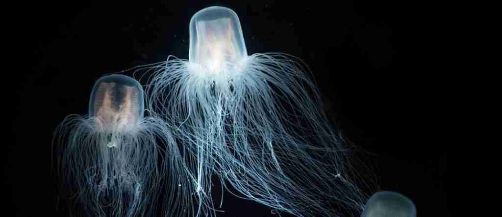 Comportamiento: Chironex fleckeri es una medusa pelágica que se desplaza nadando activamente en el agua.