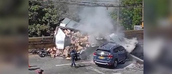 Un grave accidente se presentó en la Autopista Norte, cerca a la empresa Haceb, jurisdicción de Copacabana, donde una camioneta y una moto, se estrellaron contra un camión de carga que al parecer sufrió fallas mecánicas, el cual transportaba licor. Producto del choque, el vehículo particular se prendió en llamas, por lo que los bomberos … Sigue leyendo Grave accidente en Copacabana con camión de carga dejó dos personas muertas