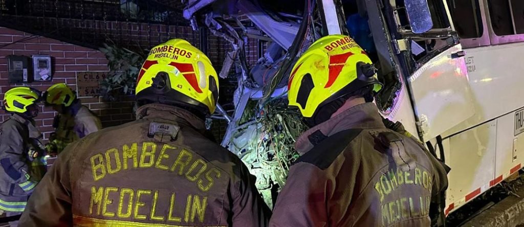 En la Cll 69 x Cra 47 del barrio Manrique, en Medellín, se presentó un accidente con un bus de servicios especiales que se quedó sin frenos, el cual impactó dos taxis, una moto y un alimentador del Metro.
